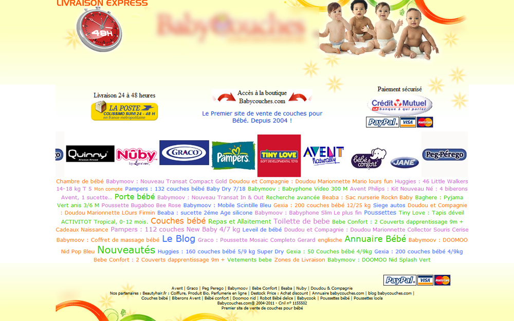 C’est déjà la troisième fois que je tombe sur ce genre de choses, la dernière en date, le site qui sort premier sur « couches » sur google france, pas rien tout de même. Intrigué par ce site, j’ai exploré les pages à la recherche d’un numéro de contact, d’un numéro RCS. Le numéro RCS existe, mais la société est clôturée depuis plus de 4 ans.